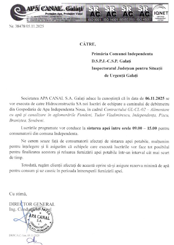 Comitetul Județean pentru Situații de Urgență Galați adoptă următoarea: